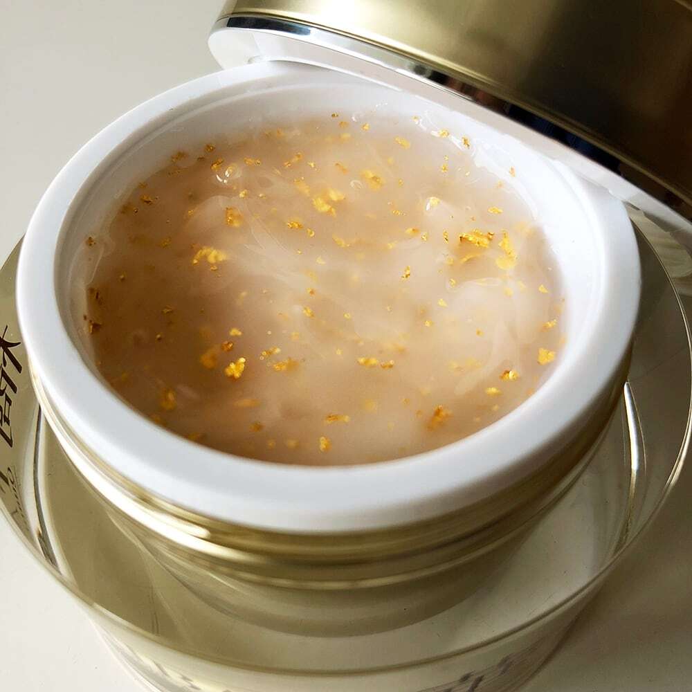 金(Gold)は、大変安定した物質です。製造プロセスは、まず純度95%の金箔をプラズマ放電等により量子加工します。次に美容液・化粧水・乳液・クリーム・パックの5つの機能を持つ保湿クリーム(オールインワンジェル)に大量に配合し、さらに金箔入りクリームを容器ごと二度目の量子加工にかけます。
